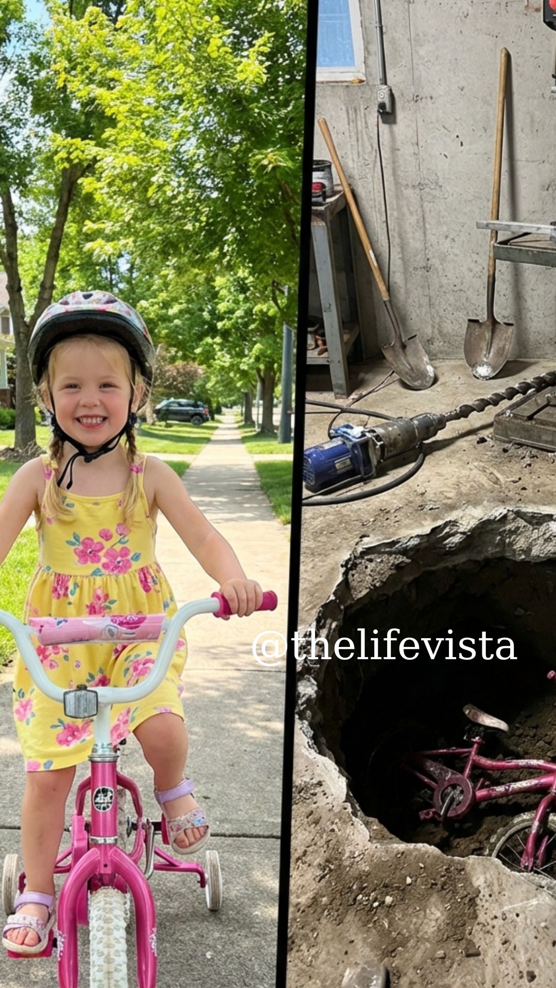 Under a slab of concrete, coated in dust and rust, lay a small pink bicycle, the white basket crushed but still recognizable. Purple and pink streamers fluttered faintly from the handlebars.