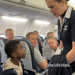 Standing a short distance away from the piano was a thin boy dressed in a neatly pressed waiter’s uniform. His name was Adrian Vale, and he looked no older than fifteen, though his serious expression made him appear slightly older for a moment. His shoes were clean but worn along the edges, and the sleeves of his uniform were carefully adjusted to hide how slender his arms were. In both hands he balanced a silver tray filled with crystal glasses that reflected the warm chandelier light. None of the guests seemed to notice how long his eyes had remained fixed on the piano.
