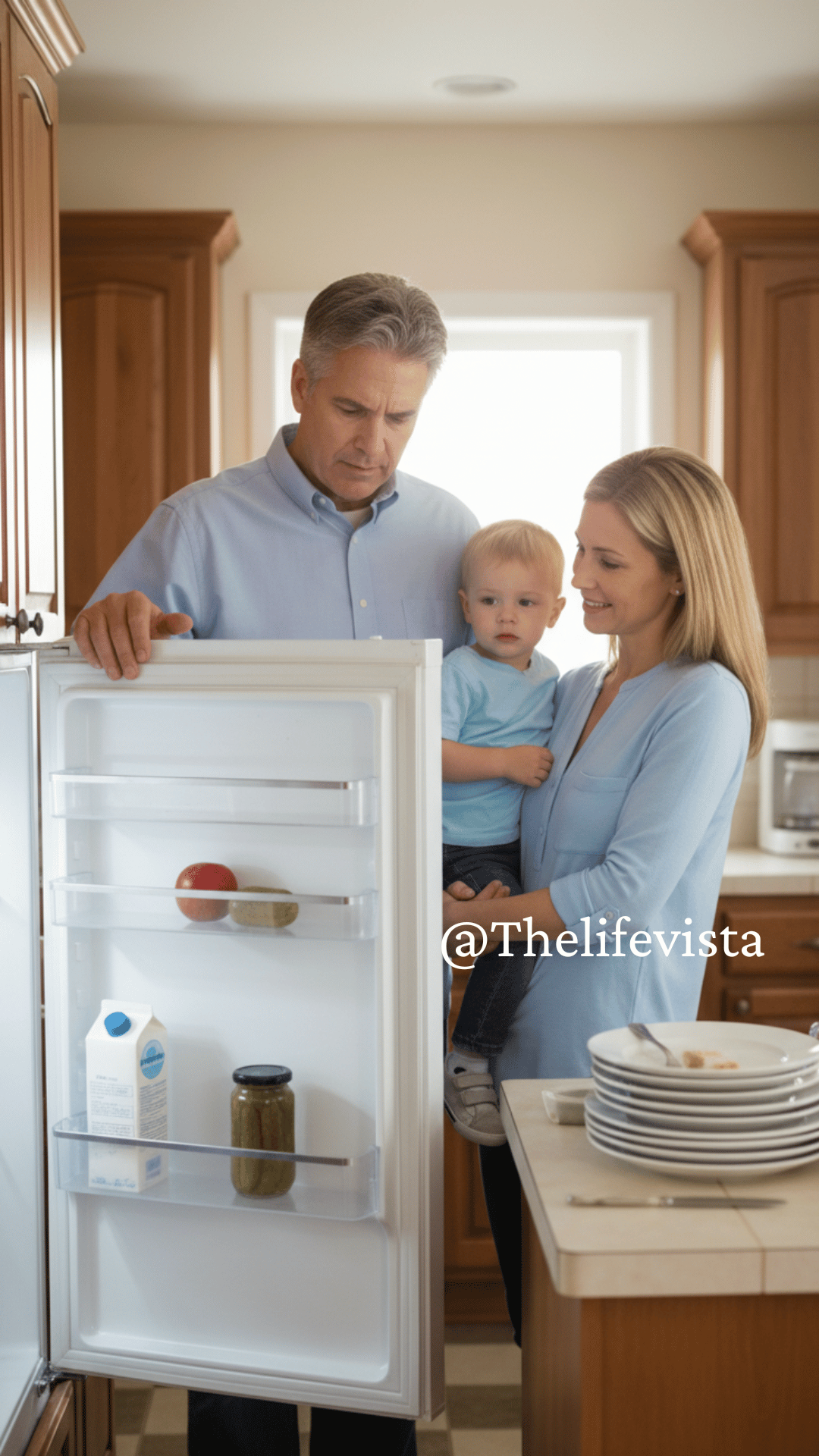 Dad arrived to take my son for the weekend. When he opened the fridge and saw it completely empty, he stared at me in shock. “You make three thousand dollars a month—why is your child hungry?” he asked. Before I could respond, my husband walked in proudly and said, “I sent all of her salary to my mother.” Dad quietly removed his jacket. That one sentence from my husband changed everything.