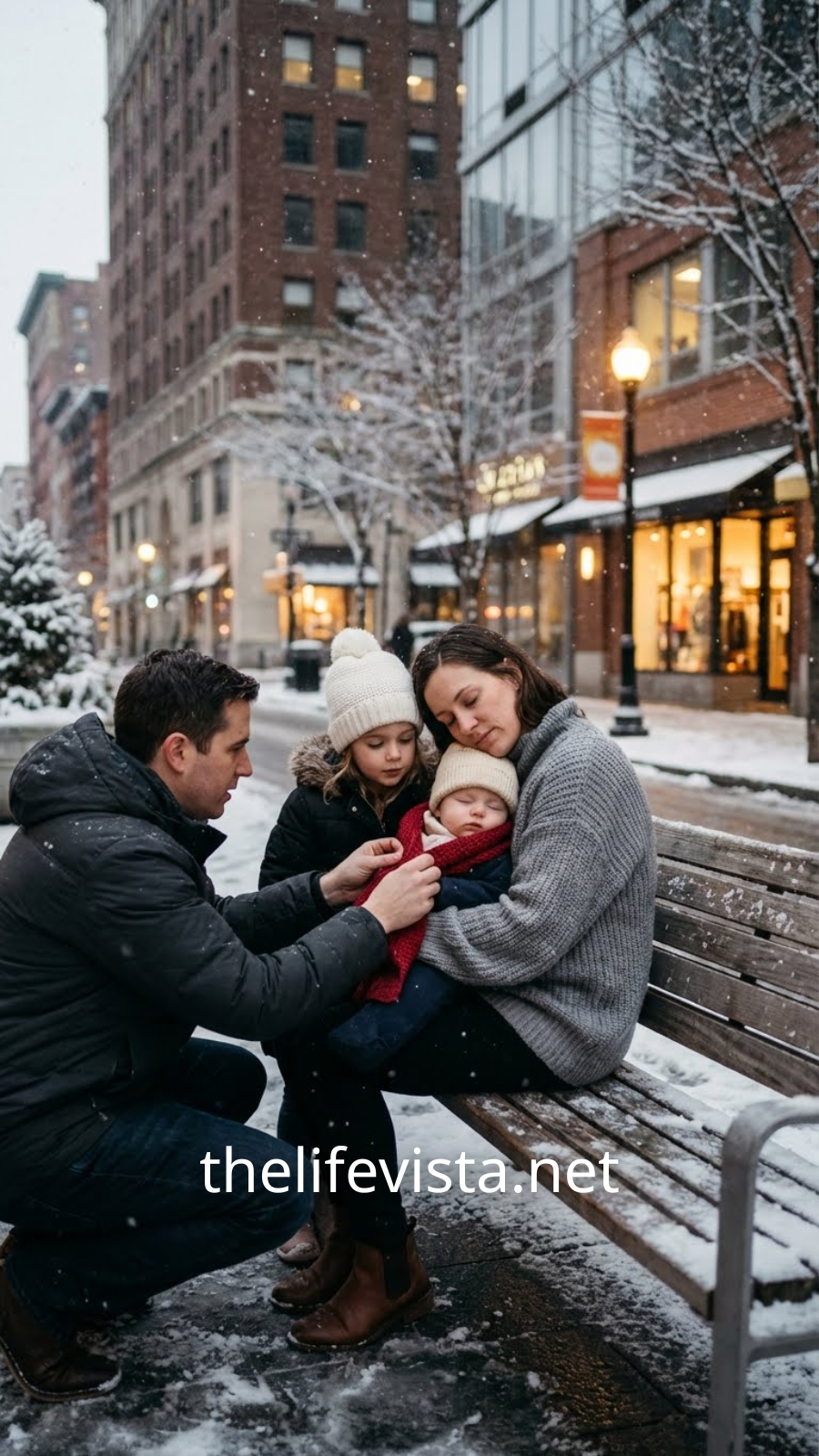Andrew knelt in the snow and gently wrapped the scarf around the baby, trying to give him warmth. The young woman didn’t move. Her lips were blue, her arms stiff around the tiny body.