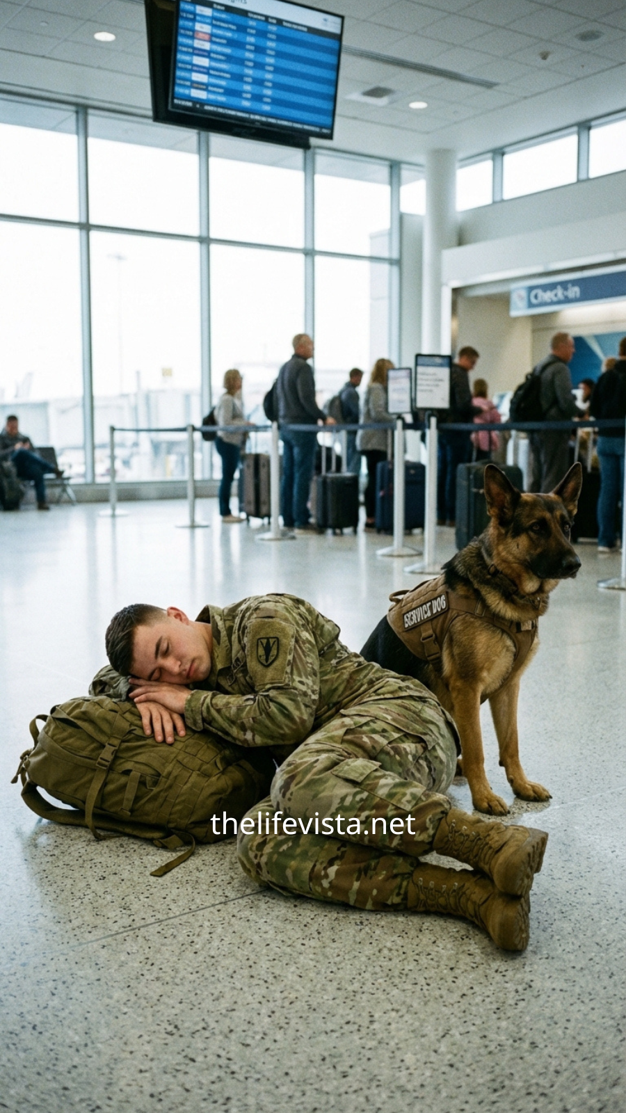 He noticed the scene from across the terminal: the soldier asleep on the floor, the dog standing guard like a living statue carved from muscle and loyalty.