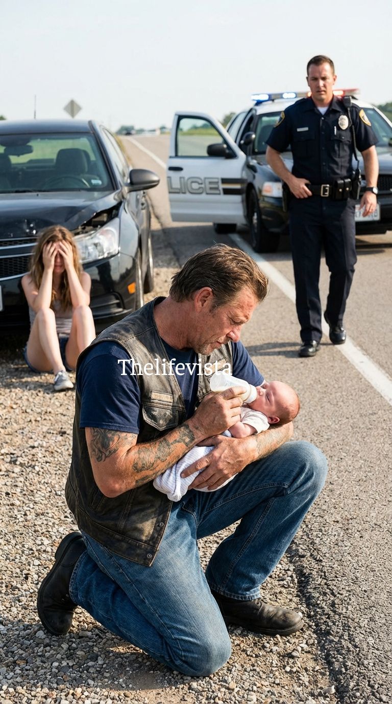 Drivers Screamed “Kidnapping” When a Leather-Clad Biker Grabbed a Newborn on I-17 — But What He Said Before Police Stepped Out Changed Everything