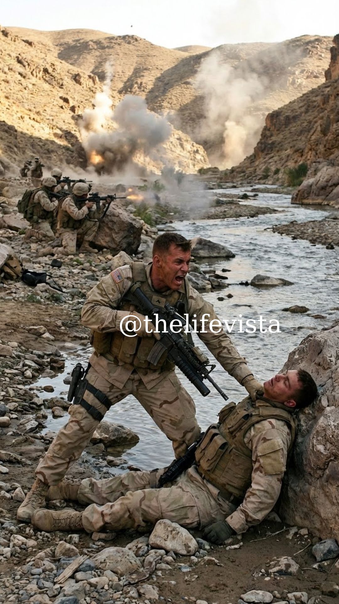 They reached the riverbed just as another burst of fire erupted. Adam’s team was still pinned. Adam lay against the rock wall, pale, blood soaking through his vest.