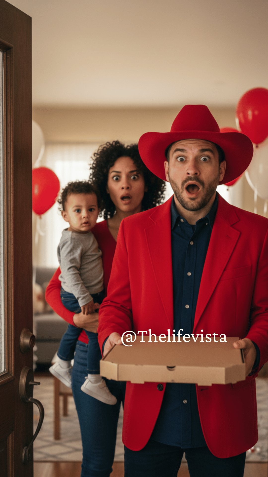 Instead, a thin young man in a red and black delivery jacket stood there, clutching a pizza box as if it weighed a hundred pounds. His name tag read “Lucas.”