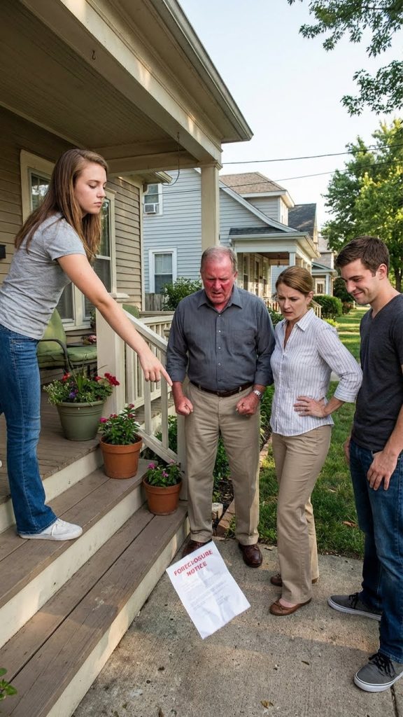 I stepped back toward the door, but before I went inside, I pulled the printed foreclosure notice from my folder and held it up. “This,” I said, my voice cutting clean through the air, “is what happens when the person you’ve been draining finally stops providing for you.”