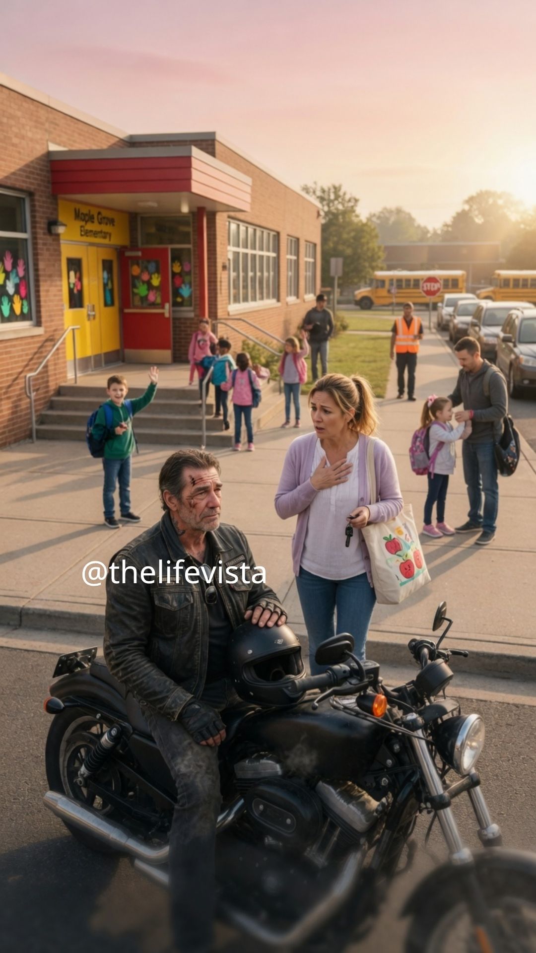 Every morning for three weeks, a man on a huge motorcycle would park across the street from my son’s elementary school. He was exactly the type of person you’d cross the street to avoid, with his worn leather jacket, skull emblem on the gas tank, and the whole intimidating look that made most people nervous. Yet every single morning, my seven-year-old son, Lucas, would give him a big, enthusiastic wave, and the biker would simply nod once, slowly, without ever moving from his bike.