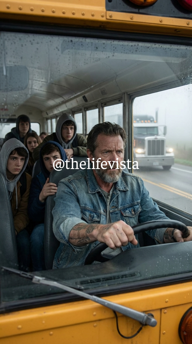 Everyone feared the stone-faced biker who drove the school bus. He never spoke and never smiled—until the day the bus broke down in the middle of a storm, and his “dark past” became the kids’ only hope.