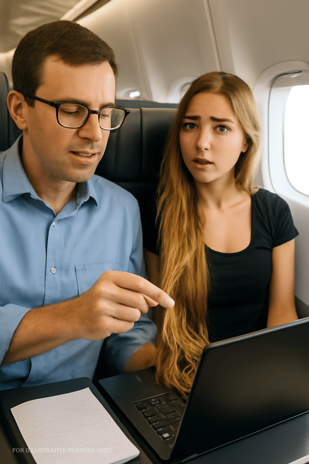 But the real issue began when strands of her hair started falling over the back of her seat. At first, it was just a few tendrils drifting onto my tray table, where I had set up my laptop and notes for some last-minute work. I pushed them aside, assuming they would stay put. But they didn’t. As the flight went on, her hair kept drifting back, more and more, until it was completely covering my workspace. The soft strands settled across my laptop screen, blocking my view, and tangled into my notes. I felt my frustration growing as the moment of calm I’d been hoping for slowly evaporated.