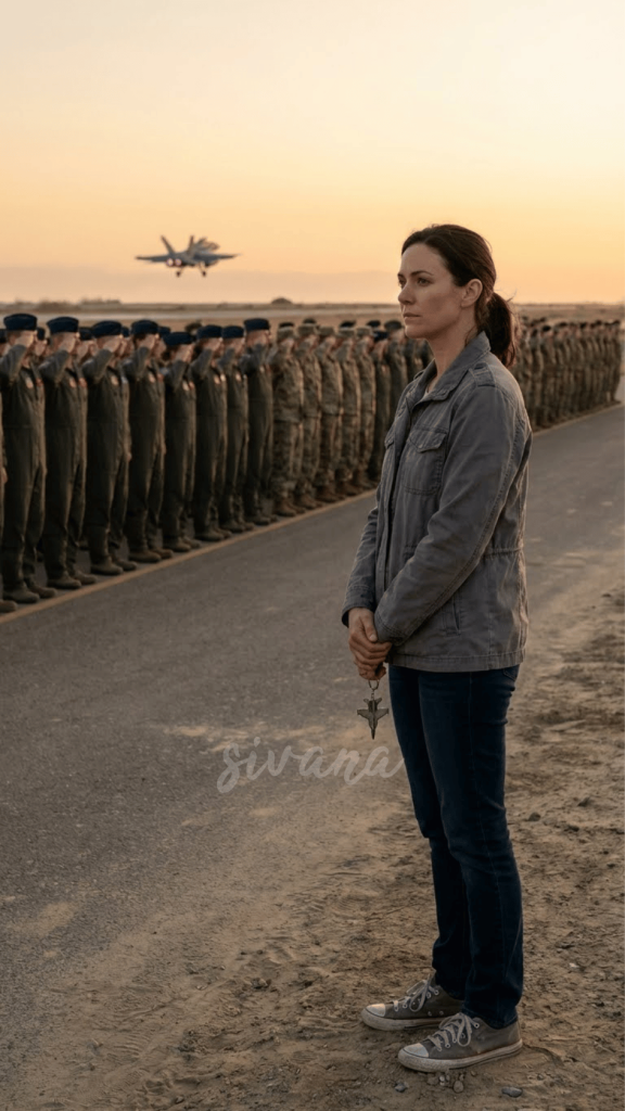 500 men and women, pilots and ground crew stood in perfect rose. In unison, they saluted their hands sharp against their brows. Riley’s throat tightened. She stepped to the door, her sneakers silent on the floor. She looked at them. These strangers who’d mocked her, doubted her, dismissed her. Now they stood for her. The young soldier who’d warned she’d fail was there, his face red, his eyes down.