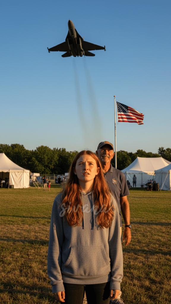 She doesn’t know what’s going on. The girl nodded satisfied and ran off to get ice cream. Riley’s hand tightened in her pocket, the keychain’s edges biting into her skin. She took a slow breath, her eyes narrowing slightly, but she stayed quiet, her focus locked on the F-22, looping high above. Then it happened. A sharp crack split the air like a whip snapping.