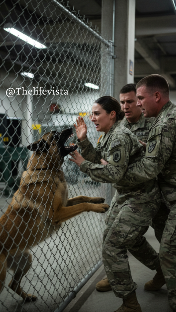 His lips pulled back over teeth that had sent four men to get stitches. A low growl rumbled from somewhere deep in his chest. The kind of sound that made your hindbrain want to run. The other handlers kept their distance. Specialist Terrence Moody, barely 22 years old and fresh from training, reached for the catch pole, leaning against the wall out of instinct.