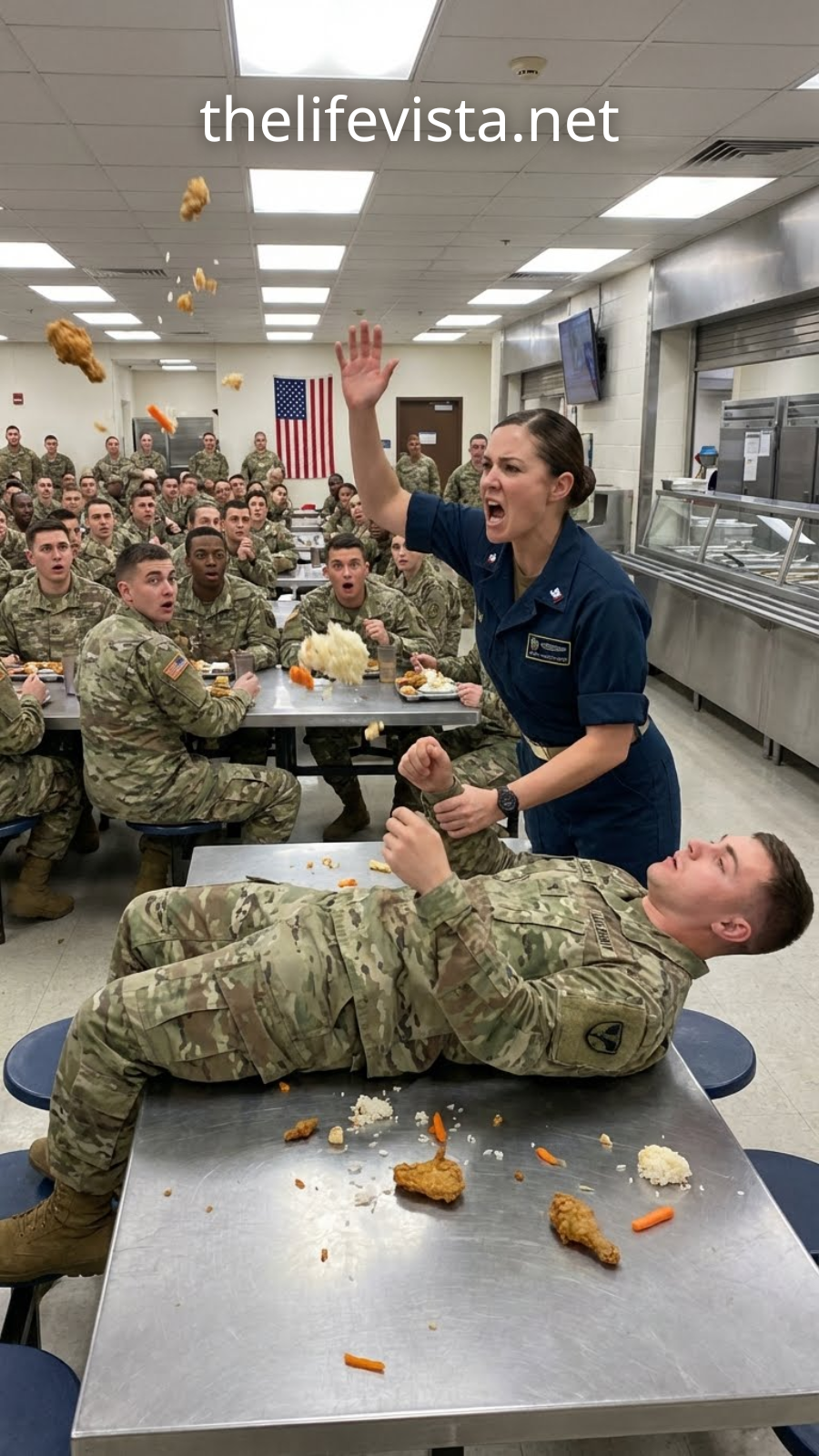 He tapped the screen, starting a live stream to his social media, zooming in on her solitary figure. “Check this out, boys,” he narrated to his online audience, his voice a low, mocking drone. “We got a fleet princess eating all alone, probably waiting for an officer to come pick up her tab. Look how stiff she sits. Bet she thinks she’s tough because she learned how to fold a T-shirt in boot camp.” He swung the camera toward his friends as they threw up crude hand signs and made retching noises.