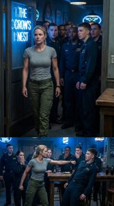 Two hours later, the bar was packed, the perfect storm of payday and Friday night. Maya moved through the crowd, her eyes always watching, her ears always listening. She wasn’t alone in her mission. Retired Master Chief Vincent Garrett, a man who had served alongside her father, sat at the bar, his presence a quiet but powerful support.