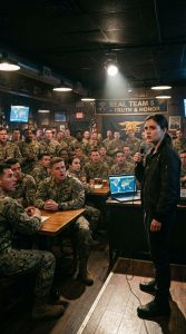 Captain Brandon Hale, a man built like a linebacker with a jawline sharp enough to cut glass, was the loudest voice in the room that night. His SEAL trident gleamed on his chest, a symbol of pride and achievement. But his words were anything but honorable.