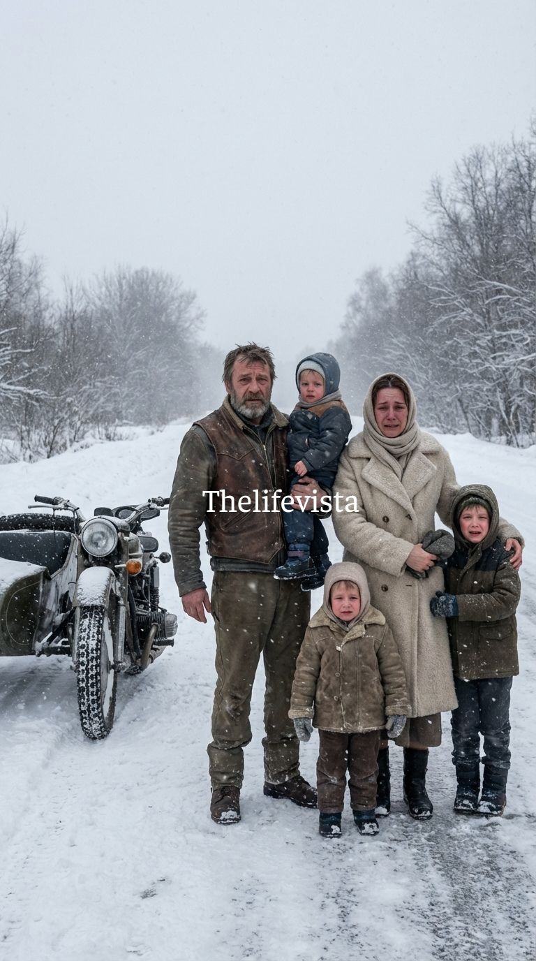 As he drew closer the forms sharpened into something unmistakably human: a woman and four children struggling against the wind. They looked like shadows fighting the storm. Marcus pulled the bike to a stop so abruptly the tires slid sideways on the icy pavement.