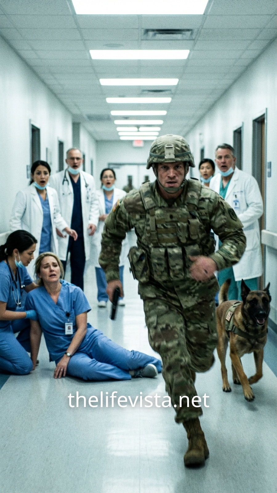 Mark Sullivan, a hospital security officer and former Navy SEAL, approached with measured steps. At his side was K9 Atlas, a trained German Shepherd, alert but restrained. Mark had seen combat zones, and he recognized abuse of power instantly.