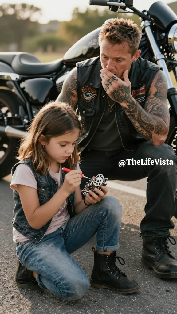 When eight-year-old Abigail “Abby” Miller handed the Hell’s Angel the wrench back and said, “Your motorcycle is repaired, mister,” the man looked down at the scar that ran from her temple to her jaw. It was pink and fresh, the kind of wound that comes from glass and anger, not a fall or bad luck.