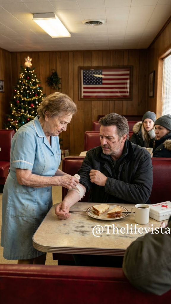 Marcus had waved her off, thinking, “It’s minor cut. I’ve survived a rack. I can handle small wound.” 7:47 a.m. Helen Carter, 78, retired ER nurse, sat three booths away, regular customer for 30 years. Breakfast routine unchanged since retiring 2010. Eyes that never stopped assessing everyone medically despite 15 years away from nursing.