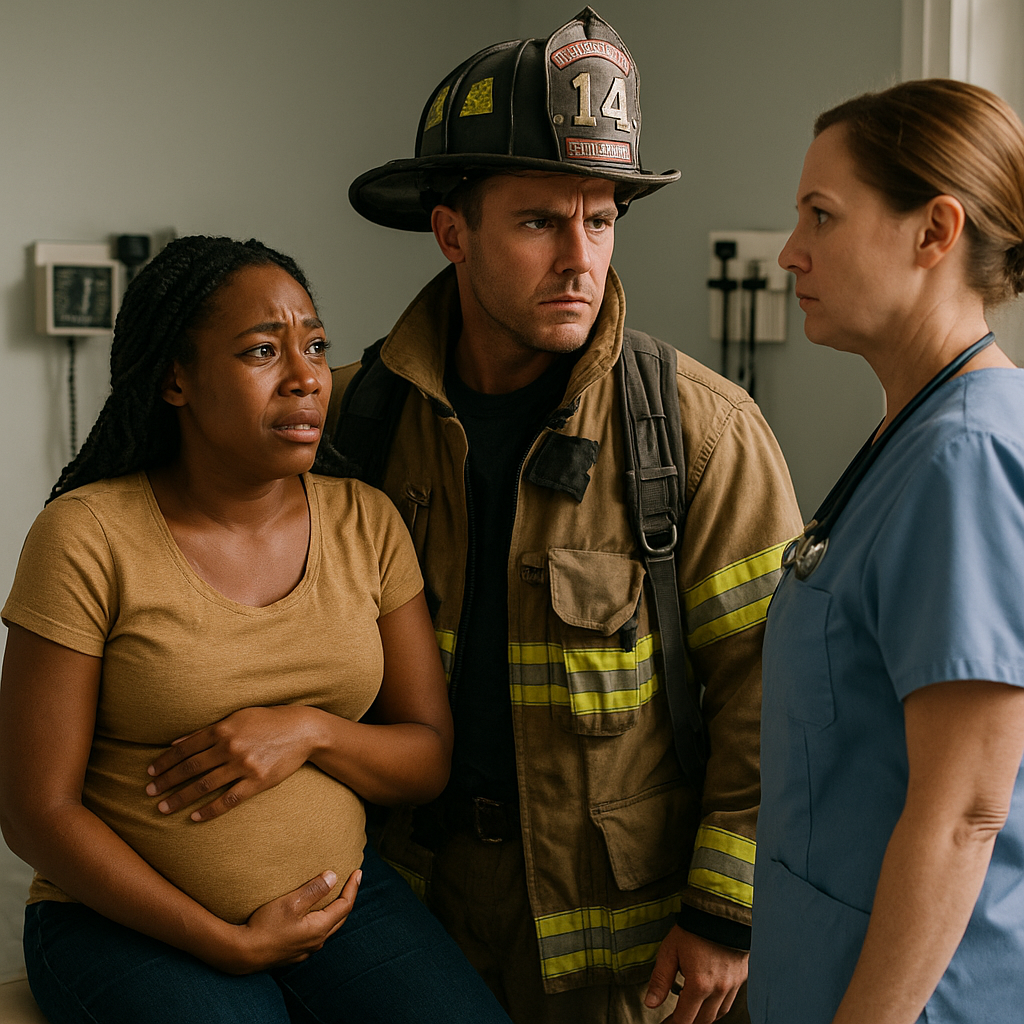 Amara Collins, eight months pregnant, sat alone beneath the sterile glow of fluorescent lights. Her husband, David, a firefighter, was still on duty downtown, his shift running long after an overnight blaze. She’d felt dizzy that morning, a fainting spell that scared her enough to come in for a quick checkup — nothing serious, she hoped.