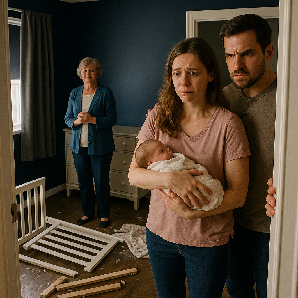 She turned toward us, arms crossed, as if expecting praise. “I fixed the room,” she announced confidently. “Babies need stimulation and discipline from the start. All that soft green wasn’t going to do her any favors.”