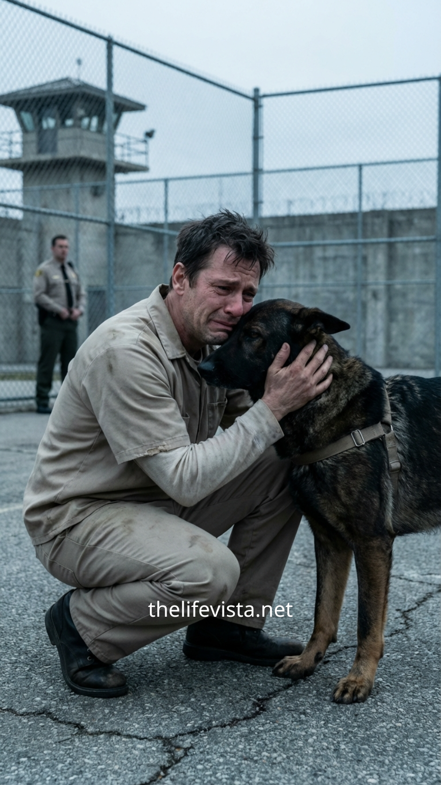 The leash went slack, and Max bounded forward. Daniel fell to his knees just in time to catch the dog as he collided with his chest. Max pushed his head hard against Daniel’s shoulder, letting out a high-pitched whine that was equal parts ecstatic joy and deep sorrow. In that instant, the prison walls, the guards, and the looming deadline all dissolved.