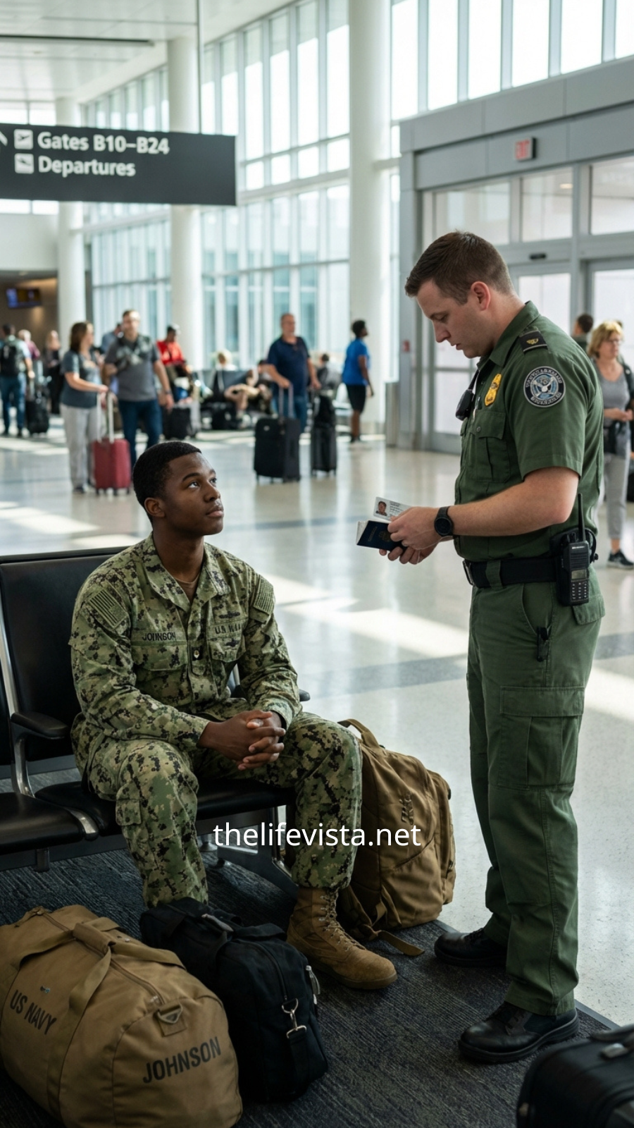 I was seated at Gate C18 in full dress uniform, waiting for a domestic connection to Norfolk before our team’s next deployment. My orders were folded neatly inside my carry-on. My military ID sat in my wallet. My duffel bag rested under my leg, and a cup of bitter airport coffee had gone cold beside me. I had been awake for nearly twenty hours, but I still sat upright without thinking. Discipline doesn’t switch off. It stays with you.