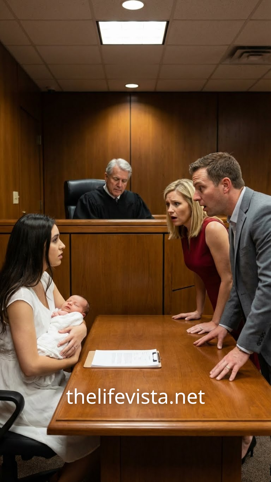 When the divorce hearing finally came, you didn’t enter court like a victim hoping to be spared. You walked in like someone who knew exactly what the room owed her. Ethan arrived first, confident in a tailored suit, with Samantha on his arm like a trophy on display. His lawyer smiled at the judge like ownership was assumed. Ethan’s opening statement wasn’t about fairness or reconciliation—it was about optics. He claimed you were “mentally unstable,” suggested your disappearance was irrational, and framed himself as the only responsible adult. He thought he was laying groundwork for control. Then the doors opened. You entered with a newborn against your chest, and the courtroom’s air shifted instantly.