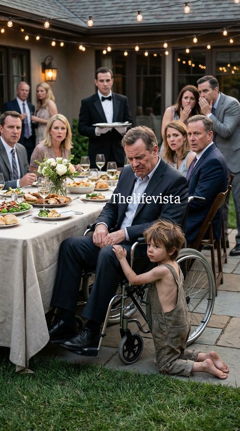 He was small, thin, and barefoot on the cold stone patio. His clothes were worn in the quiet way poverty reveals itself—not torn dramatically, simply faded beyond color. His dark hair fell across his forehead as he looked up at the people seated around the table.