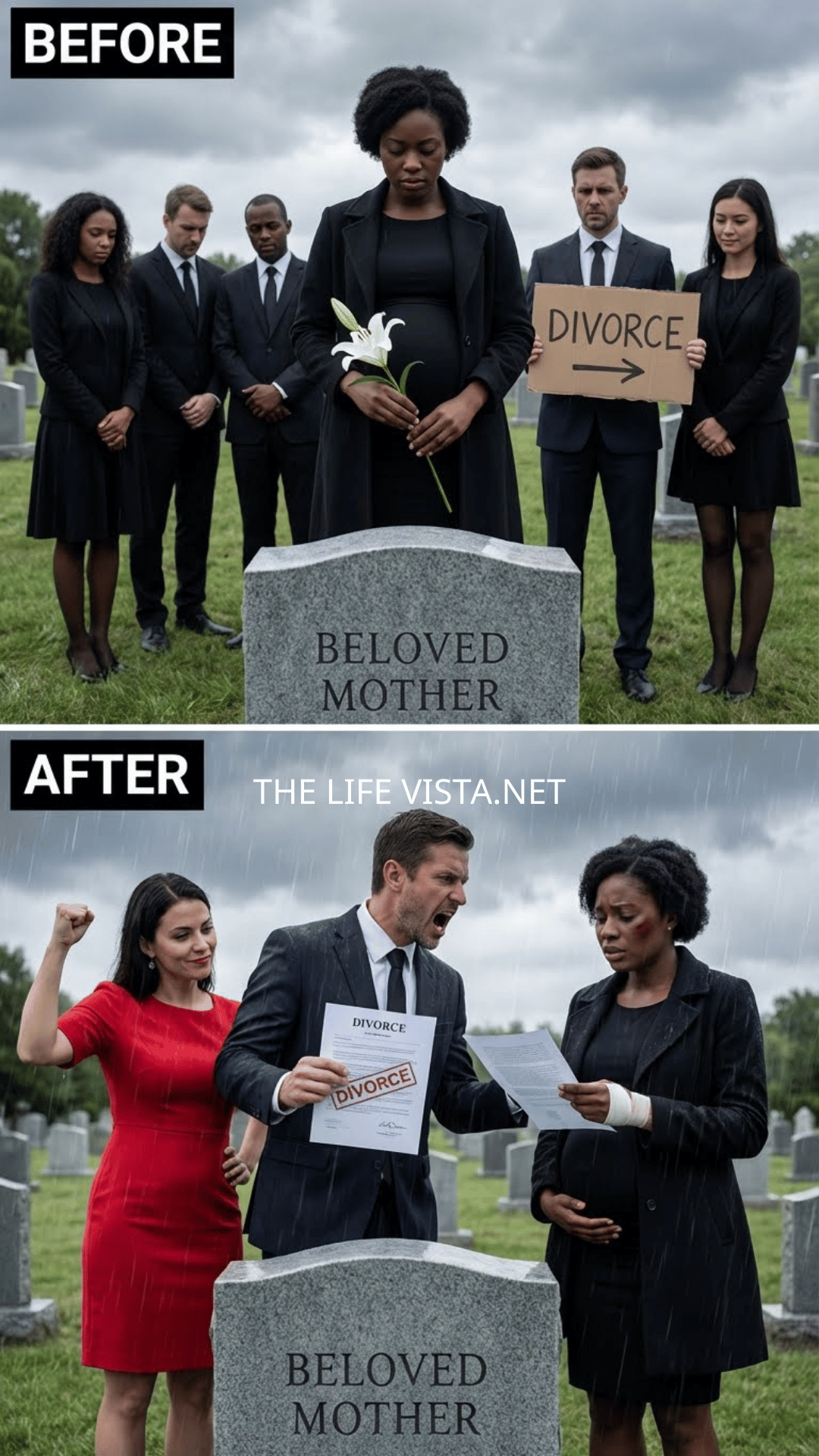 Vanessa stood frozen at her mother’s graveside, divorce papers clutched in one hand, her other hand protecting her belly. The crowd began to disperse, uncomfortable with the scene they’d witnessed. Some offered hollow condolences that felt like insults. Others avoided her eyes completely, as if betrayal was contagious.