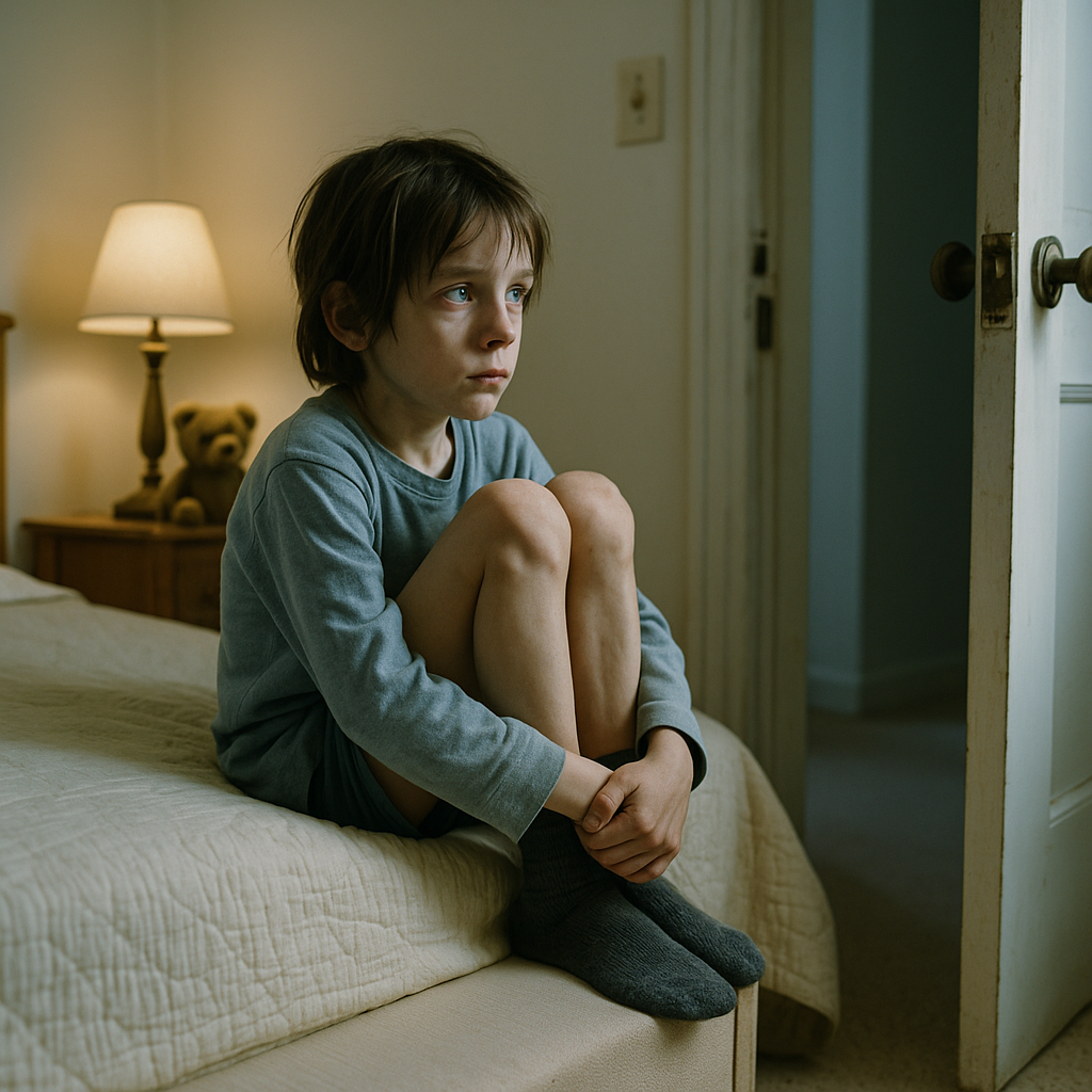 The furnace kicked on — a deep thunk from the basement. Ethan screamed, dove under the bed, trembling violently.