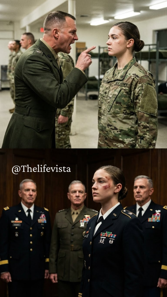 The private had been too afraid to file a formal complaint. The woman remained calm, her breathing steady despite the obvious tension in the room. “Sir, I understand your concern about protocol. Perhaps we could discuss this privately rather than disrupting the messaul?” Behind her composed exterior, Major General Olivia Harris was mentally cataloging every detail of the confrontation for her inspection report.