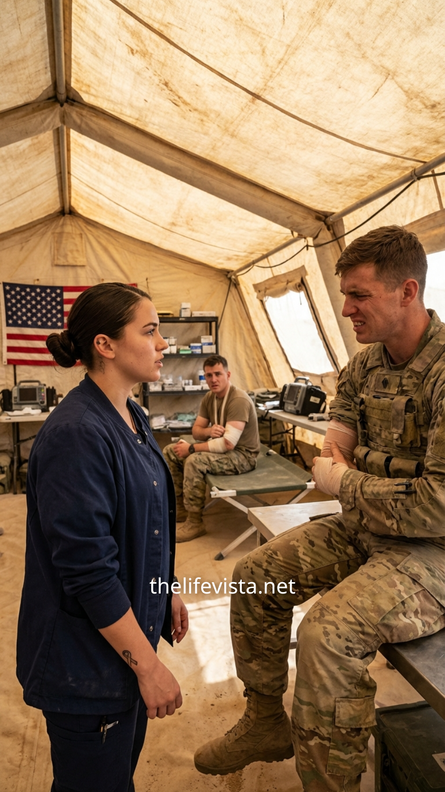 The words weren’t merely spoken. They were launched like a weapon. They came from Staff Sergeant Brandon Kade, a man built like a cinder-block wall and gifted with a voice that sounded like gravel being crushed under tank tracks. His fist—a compact knot of bone, tendon, and malice—followed the insult, slicing through the cool desert air before landing with a sound that was both wet and sharp.