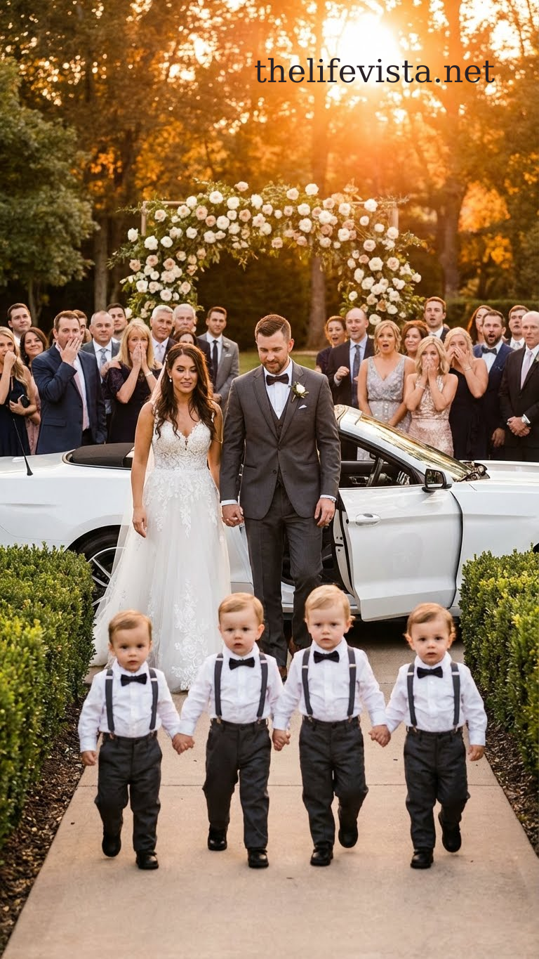 I arrived with Michael and our four toddlers. We stepped out of a white SUV—not flashy, but clean, confident. The moment my heels touched the pavement, the conversations around us fell into silence.
