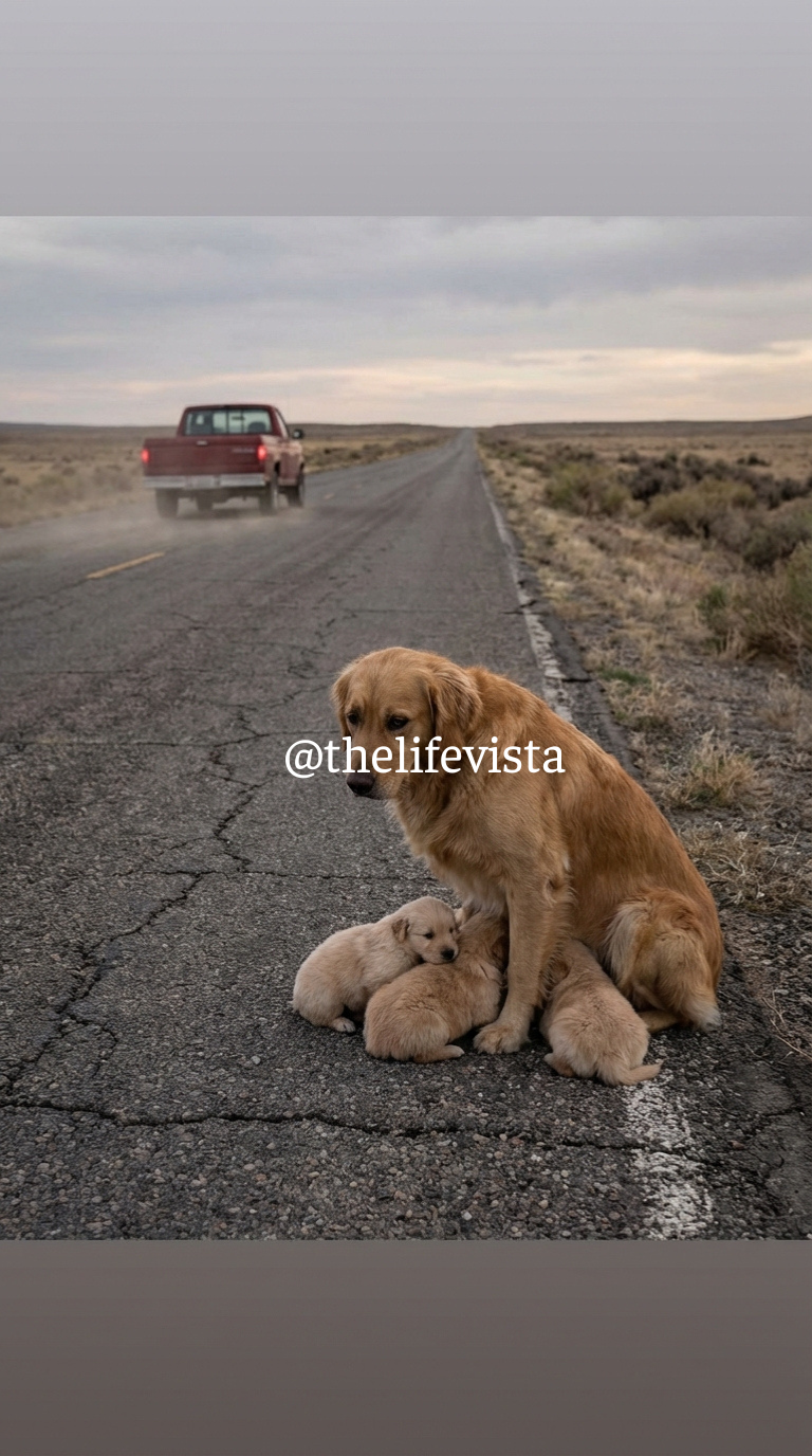 Simon quickly shoved the terrified mother dog and her blind, squealing newborns onto the cracked asphalt shoulder. Goldie whimpered, her eyes pleading with him. As he slammed the tailgate shut, Goldie made a desperate lunge, scratching the paint. Simon reacted with a vicious kick, shouting, “Stay!” He then jumped into the cab and sped away, ignoring the frantic mother running after the truck. He watched her shrink in his rearview mirror until she was just a speck of gold against the gray road, a problem eliminated.