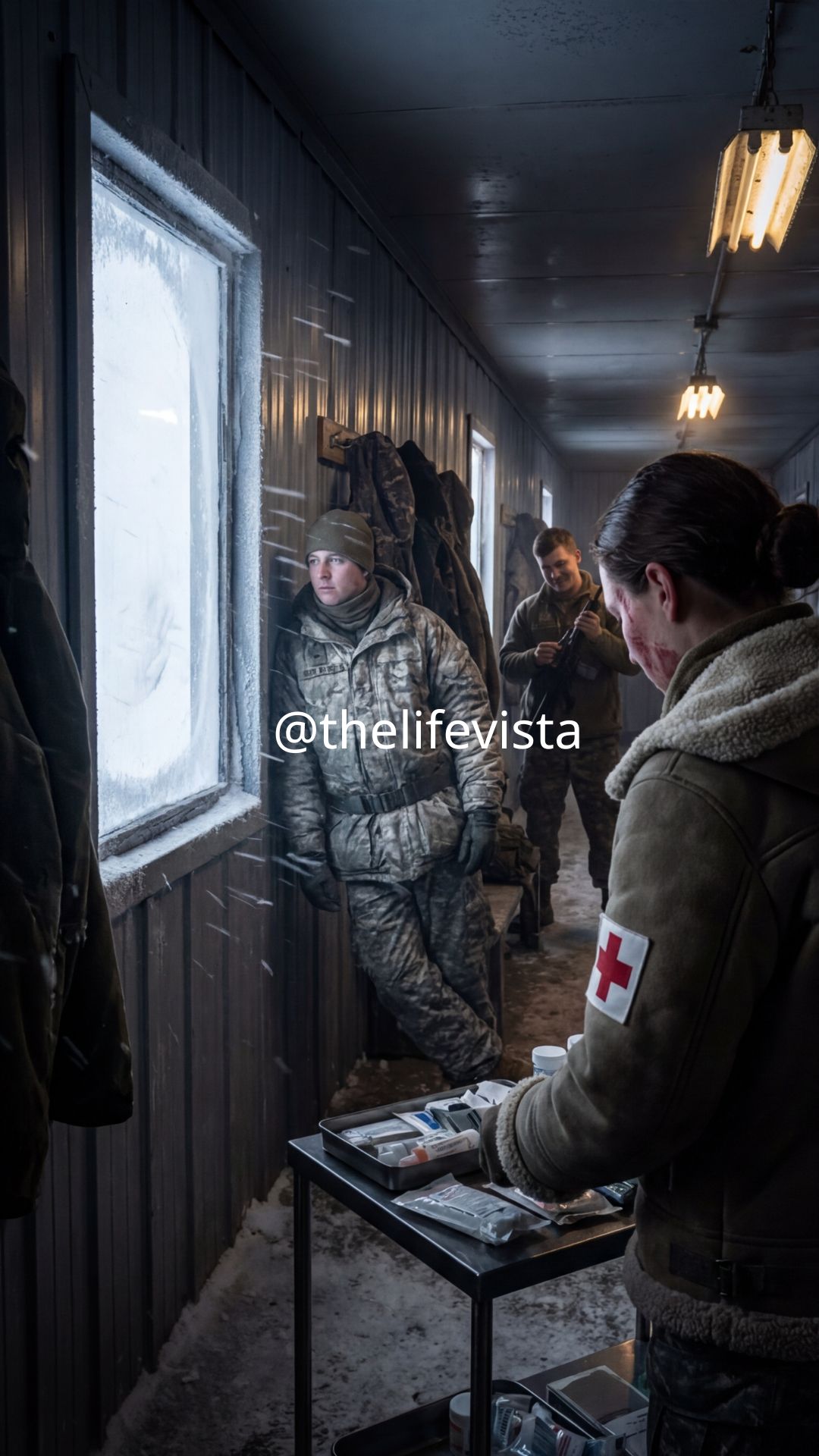 He was in the common room with Danny and three others — Private First Class Ortega, Corporal Rachel Finch, and Private Sullivan — when Elena Voss came in from outside. She had been out for less than five minutes, a check of the medical supply cache in the outer storage unit, but there was snow on her shoulders, and her exposed cheek was white with a cold flush that went immediately red. As she stepped into the warmth, she shed her outer coat. She crossed to the window. She stood there for a moment that was slightly too long, her eyes moving across the valley in a pattern that didn’t look casual.