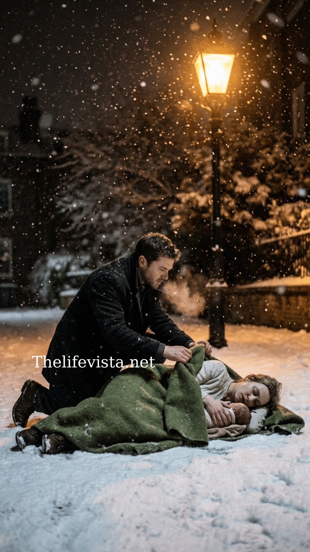 Snow fell like shattered glass under the yellow glow of streetlights. It was 2 a.m. in Central Park, the kind of night when even the city’s pulse seemed to stop. Lucas Reed tightened the collar of his cashmere coat as he stepped out of his black Bentley. The billionaire tech founder had left a tense board meeting and told his driver to take the long route—he needed silence, not spreadsheets. But silence ended when he saw her. At the edge of the frozen pond lay a woman, motionless, her arms curled protectively around two tiny bundles. For a second, Lucas thought he was imagining it. Then one of the bundles moved—a faint whimper pierced the air. He ran.