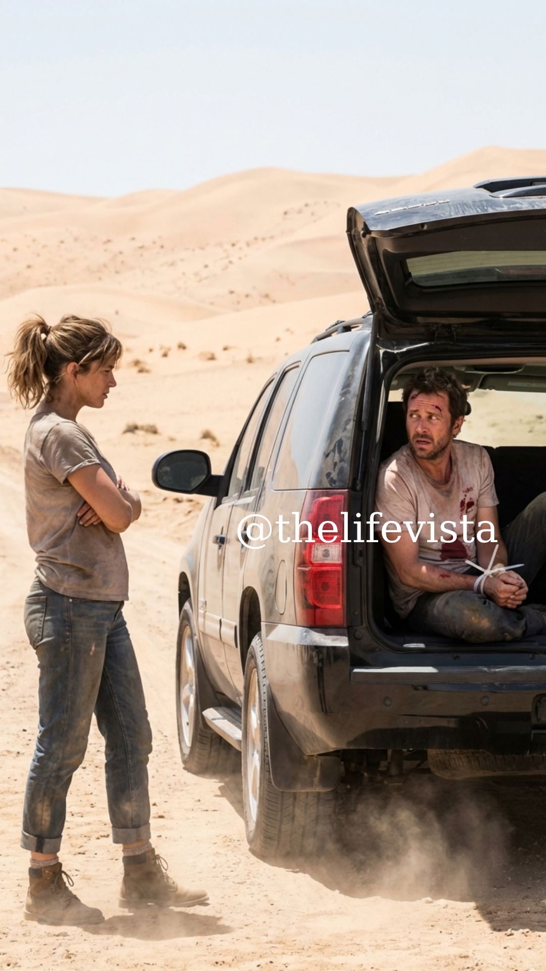 When the lid creaked open, he squinted up at her, blinking against the harsh sun. Disoriented, pale, bloody at the temple—but the moment he saw her face, something shifted.