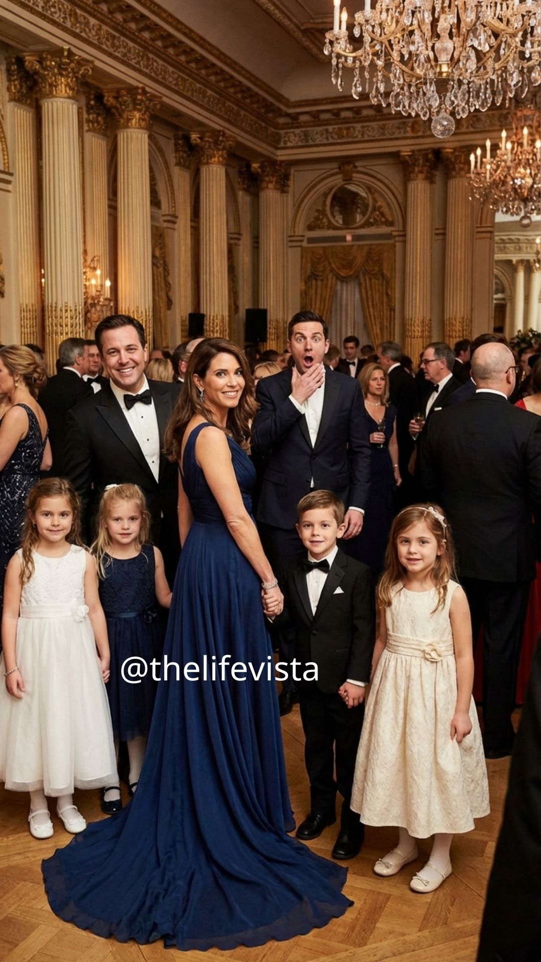 I wore a deep blue evening gown, simple but elegant. Lucas stood beside me, steady and calm, his hand warm against my back. Our four children—two teenagers and two younger ones—stood proudly between us, dressed with a seriousness that made me smile. They were not props. They were my life. Our life.