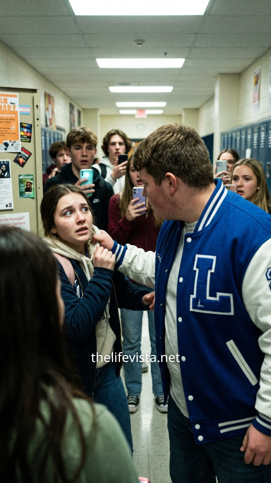 Her body trembled violently as oxygen rushed back into her lungs. She buried her face against my shoulder, gripping my jacket tightly as if afraid to let go. The hallway fell completely silent, broken only by the sound of her coughing and the faint hum of the lights overhead. Around us, students stood frozen, their phones forgotten in their hands.