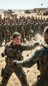 The base was alive with the clatter of gear and the stomp of boots, but Ava’s focus was razor-sharp. She checked her watch, tightened the straps on her protective gear, and mentally rehearsed the moves she’d spent years perfecting. Today wasn’t just another drill. Today she’d been chosen by Sergeant Mitchell to demonstrate advanced hand-to-hand combat techniques to a mixed crowd from every company on base.
