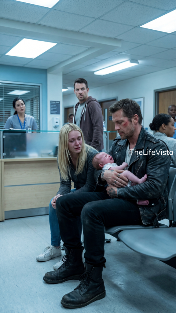We had been there nearly an hour. No doctor had touched our daughter. No one had looked past the intake note and the assumption that babies cry. Yet a stranger in leather with tattoos and rough hands had done more for her in two minutes than the polished system around us had done in all that time. I heard myself telling the nurse to get a doctor now, and this time my voice carried enough force that the whole waiting room seemed to listen.