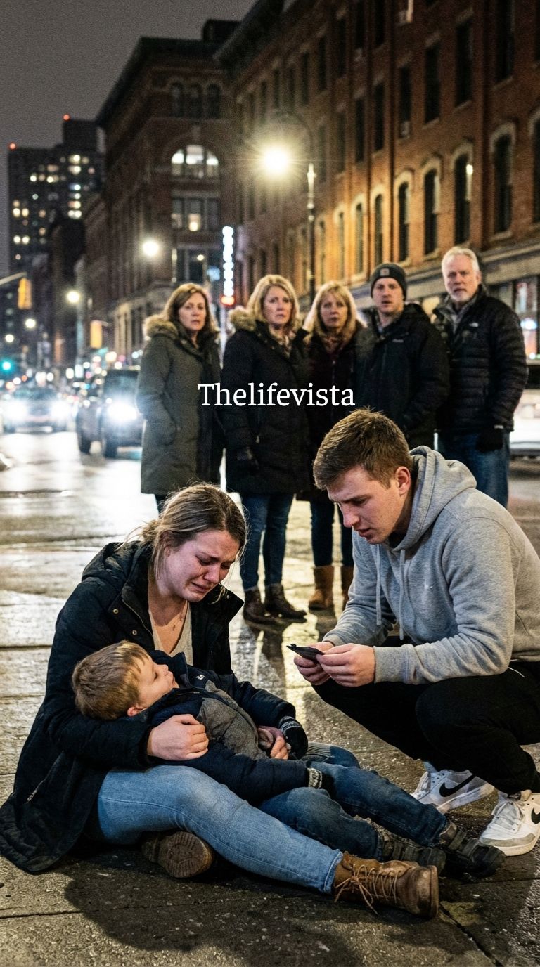 His lips had lost their color. And the crowd gathering nearby had become a wall of distant faces rather than a source of help. A man in a business suit paused for a moment before stepping around them.