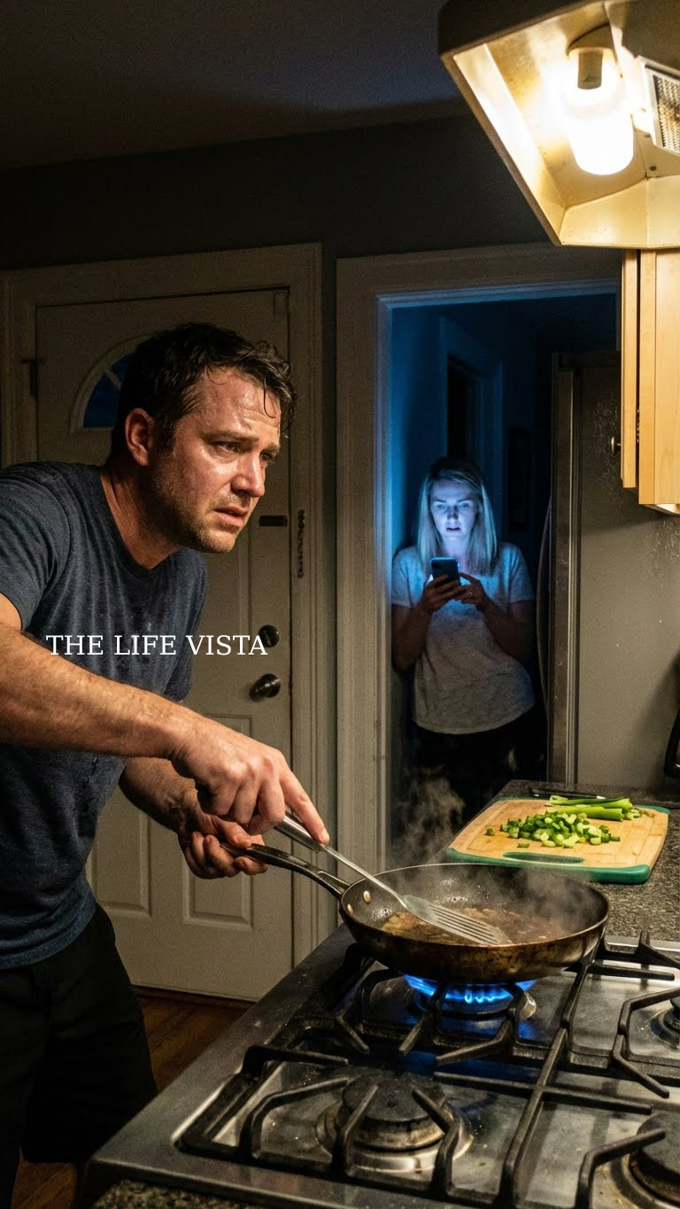 For a second, I just stared at the screen like words could be misread if you blinked hard enough. The smell of garlic and butter filled our kitchen. The pan hissed softly. My husband, Ryan, stood at the stove in a T-shirt and apron, humming under his breath like nothing in the world was wrong.