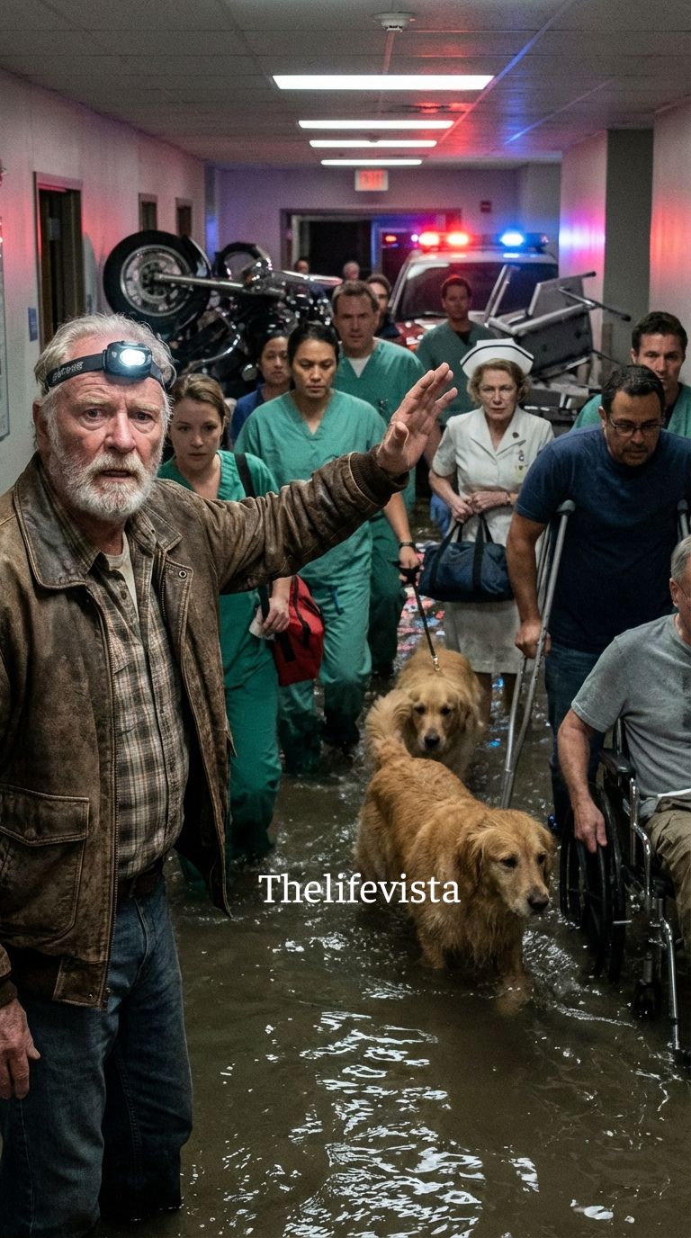 Then came the storm. A massive flood swept through the town one night, cutting power to half the city—including the VA hospital.