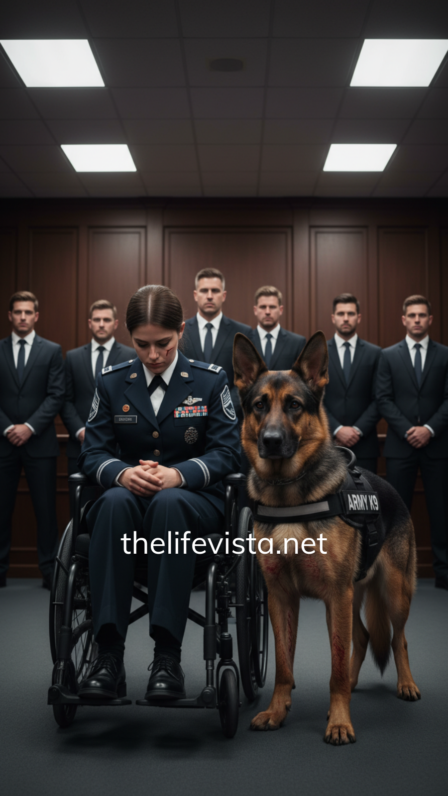 He strained against his handler, claws scraping against the polished floor, ears flattened, muscles trembling as though he understood every word that had just condemned her.