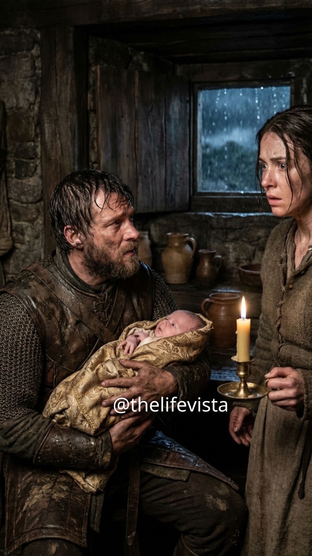 The world seemed to stop. The fog thickened, muffling all sound. Something deep inside Claire reacted before her mind could understand; she opened the door wider. The man stepped inside, droplets of rain falling from his cloak onto the dirt floor. The baby let out a soft whimper—too small a sound to belong to a child with a destiny so large.