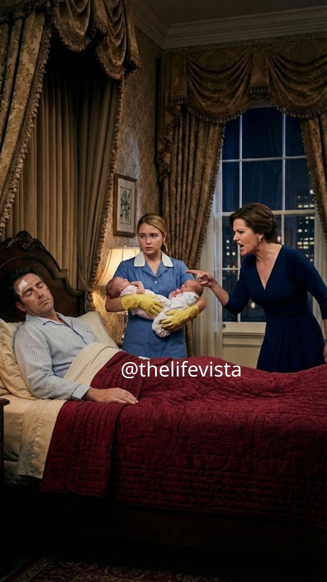 “Who gave you permission to walk in here, you overfamiliar maid?” she roared, smashing her glass against the wall. “Get those little bastards out of my sight! They smell like poverty. I told you I don’t want Sebastian’s kids wandering around my bedroom.”