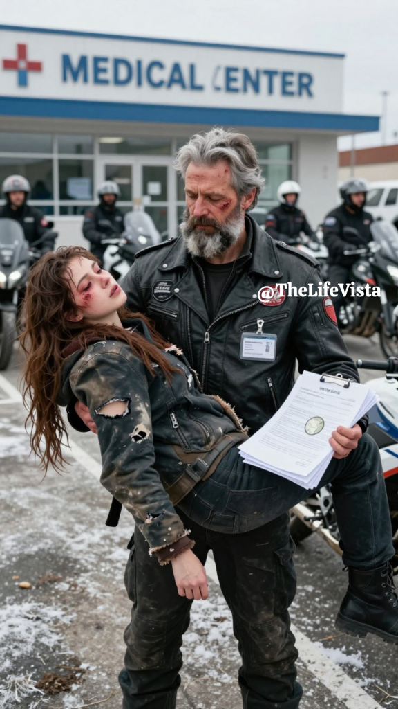 Every brother, this one matters. By midnight, five motorcycles were parked outside the clubhouse. By 12:30 a.m., Sarah was on a cot with IV fluids running, heated blankets, her core temperature slowly rising. Frost, the paramedic, monitored her vitals while Wolf spread her documents across a table, reading with increasing disbelief.