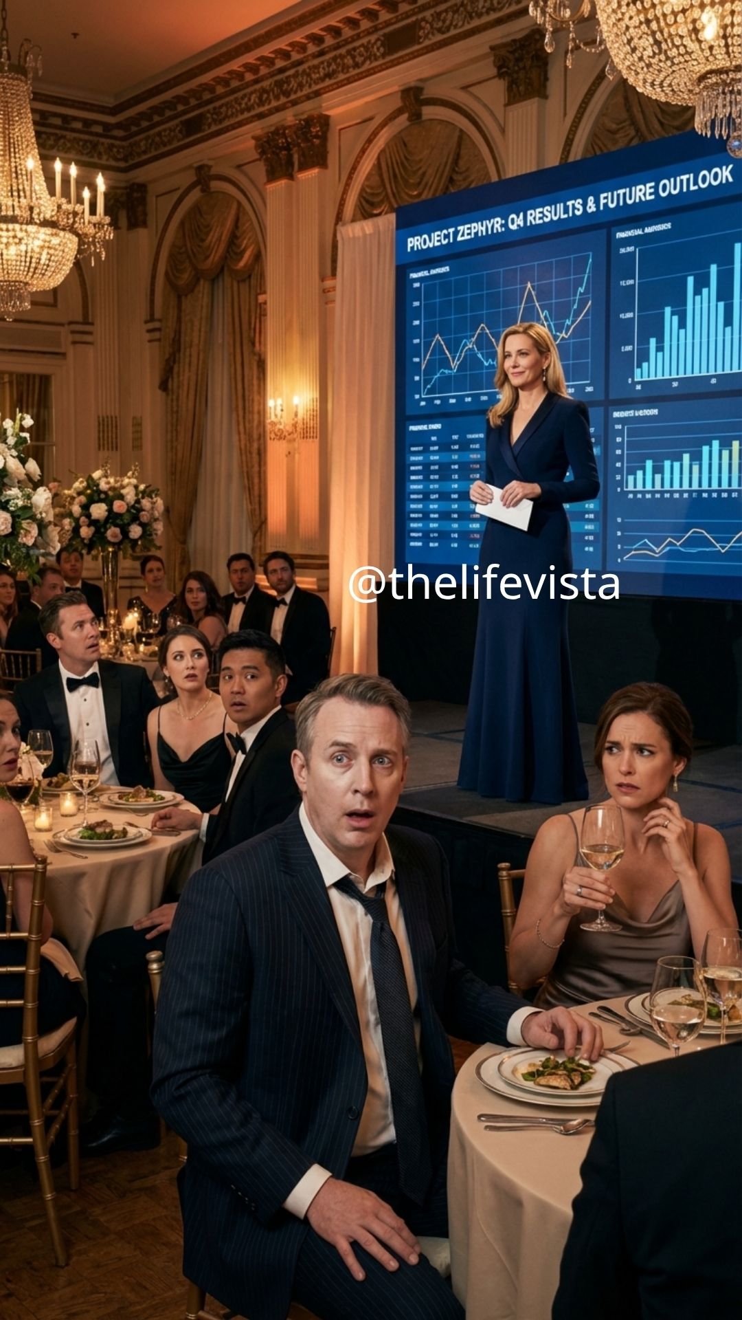 By then security had already begun moving in. Someone had called legal counsel. Someone else was on the phone with the board. The chamber orchestra that had been playing soft instrumental music near the far wall had gone silent, their instruments resting uselessly in their laps while the elegant machinery of the evening broke apart table by table.