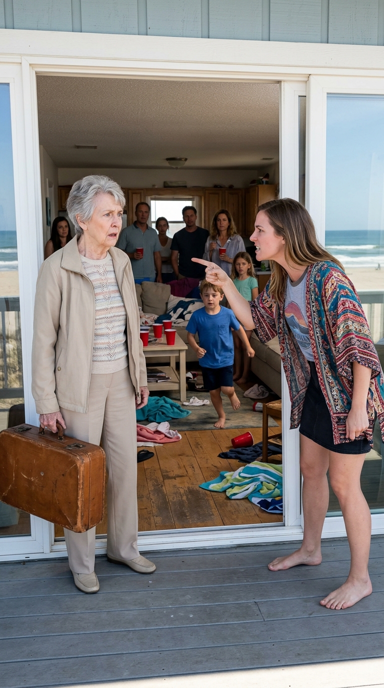 I wanted nothing more than a peaceful weekend at my beach house. At seventy, my greatest pleasures were simple ones—the rhythm of the waves, a warm cup of tea, and the quiet I had earned after a lifetime working as a seamstress. But the moment I stepped onto the porch, suitcase in hand, my heart sank. Strange cars crowded the driveway. Loud music rattled the windows. Children tore across my lawn, kicking a soccer ball straight into the geraniums I had lovingly tended for years. And then I saw her—my daughter-in-law, Ashley—standing on my terrace, wearing one of my aprons, acting as though the house belonged to her.